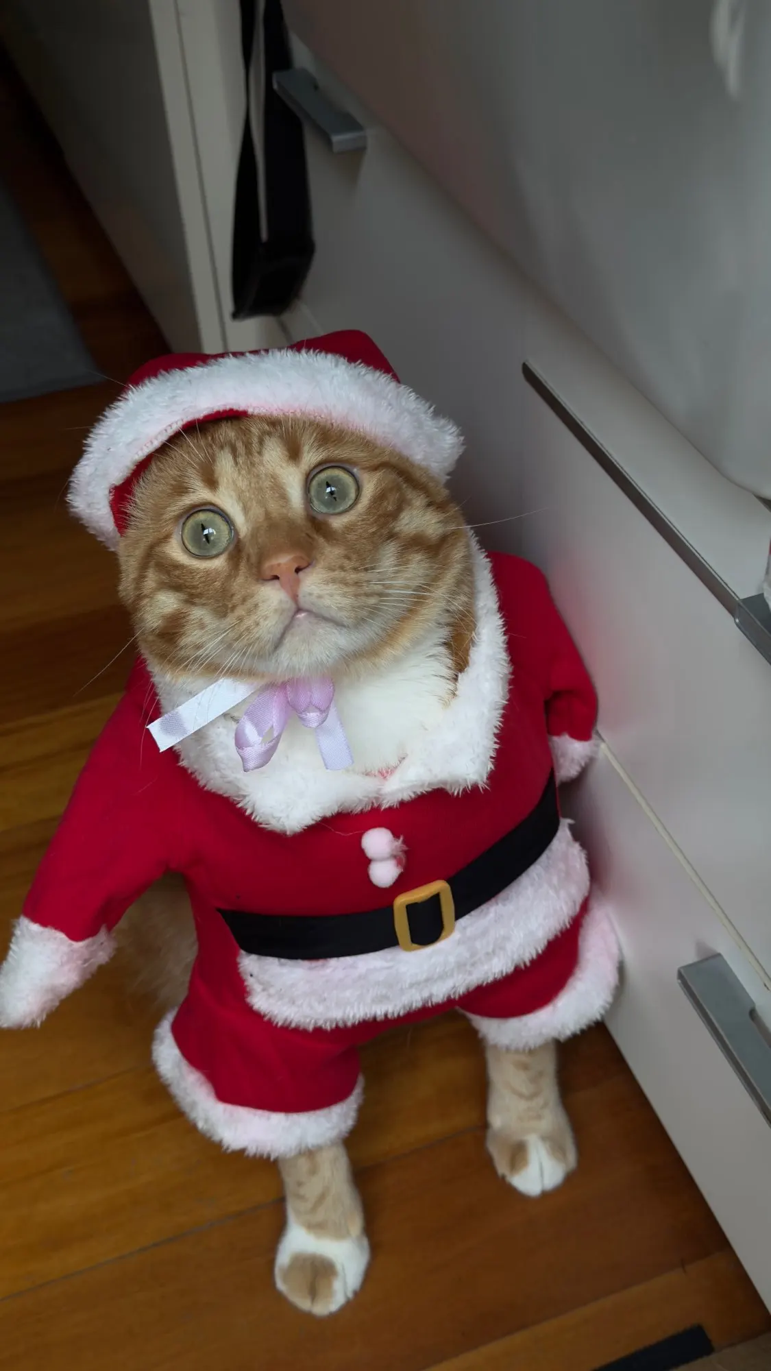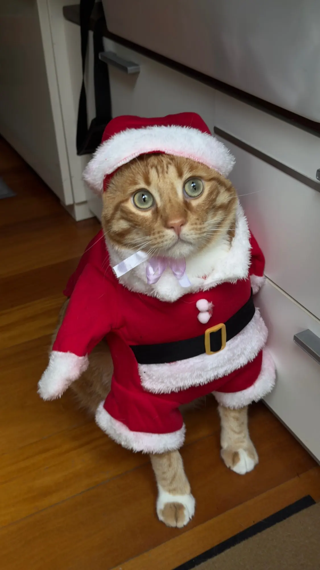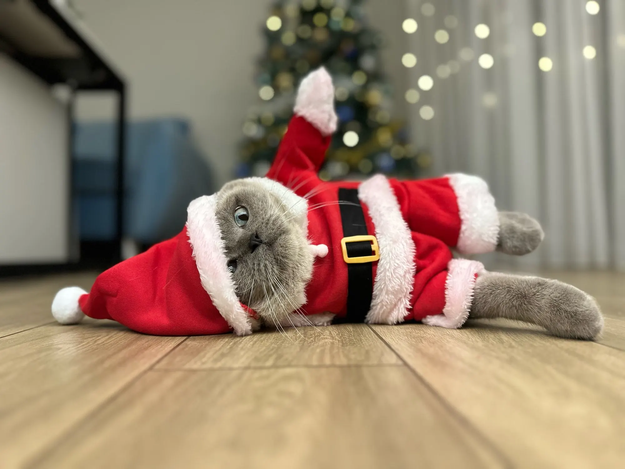 Everything is fine, according to the description. The kit includes bolts that can be attached to the bed; I have them on double-sided tape. So far, the cat is not playing with it.