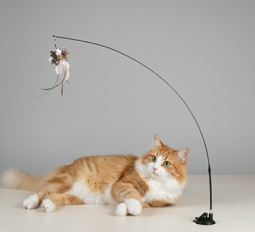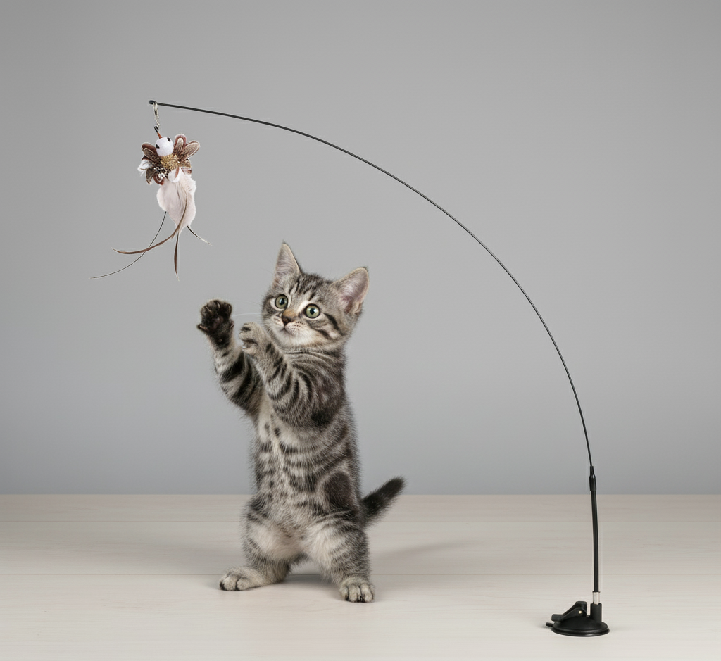Se din katt hoppa, jaga och slå efter den lockande fjädern. Leksaken ger inte bara viktig fysisk motion, utan även mental stimulans som bidrar till en gladare och mer harmonisk katt.